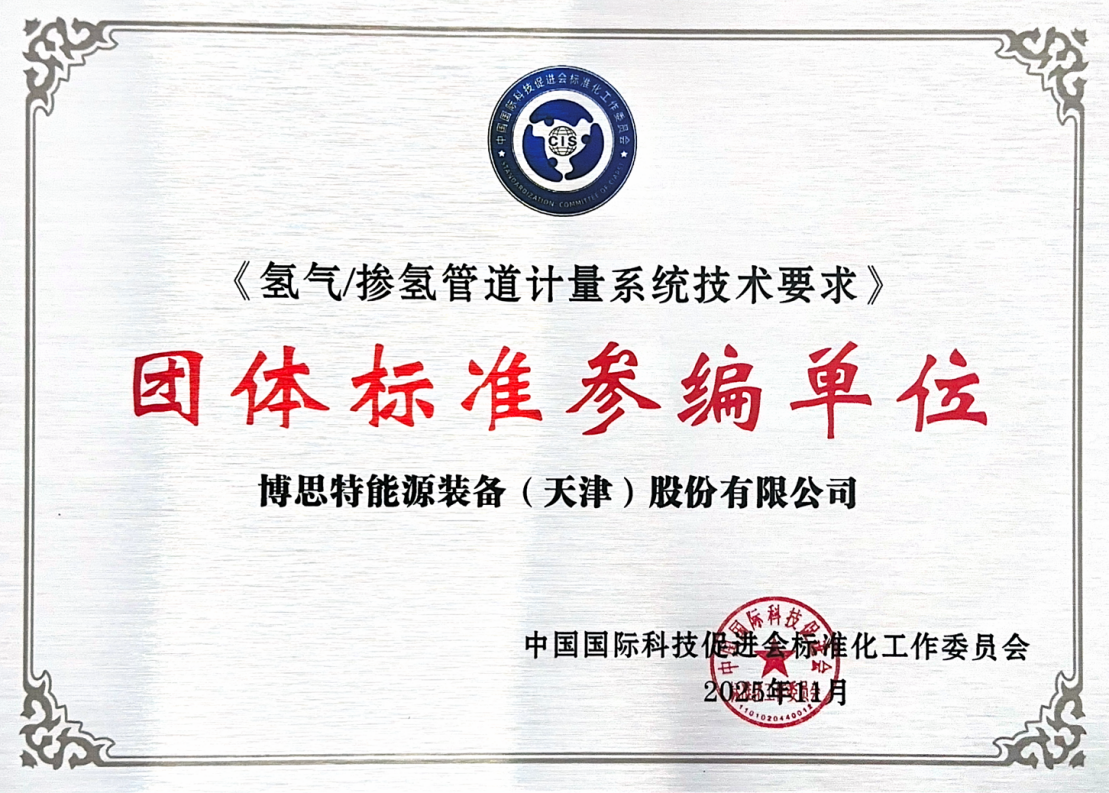 Recently, Best Energy Equipment (Tianjin) Co., Ltd. has received a series of important industry recognitions: First, it was awarded the plaque of a participating unit in the drafting of the group standard " Technical Requirements for Hydrogen/Hydrogen Blending Pipeline Metering System" (T/CI 1035-2025), which will be released and implemented in June 2025, filling the gap in China's hydrogen/hydrogen blending pipeline metering field; then, it participated in the drafting of the group standard "Technical Specification for Carbon Reduction Technology of Deep Peak Shaving Thermal Power Unit Coupled with CCUS" ( T/HDNY8-2025 ), which will be officially released and implemented in December 2025, providing key technical guidance for the low-carbon transformation of thermal power units.