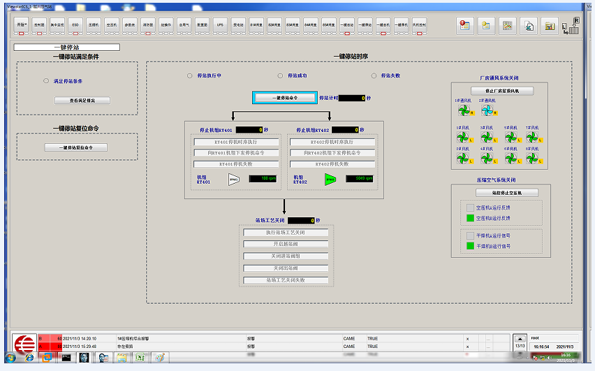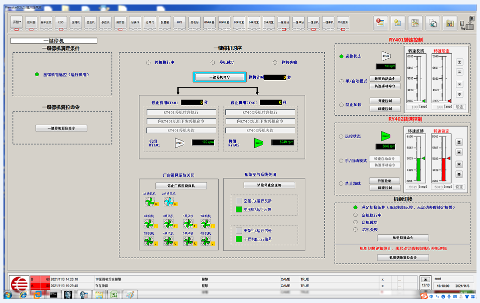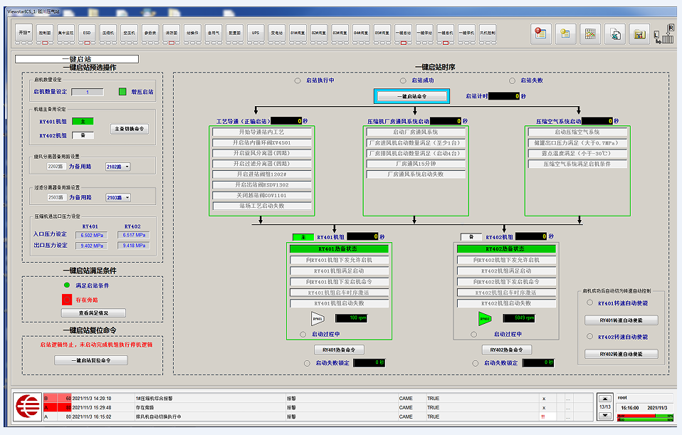 The "One-key start and stop" function improves the reliability of compressor station start-up and shutdown processes. Simultaneously, the promotion and implementation of this technology align with the development plan of natural gas pipeline control models, transitioning from decentralized dispatching to centralized dispatching, then to comprehensive remote control, and finally to intelligent control. Therefore, the construction of the "One-key start and stop" project is highly necessary.